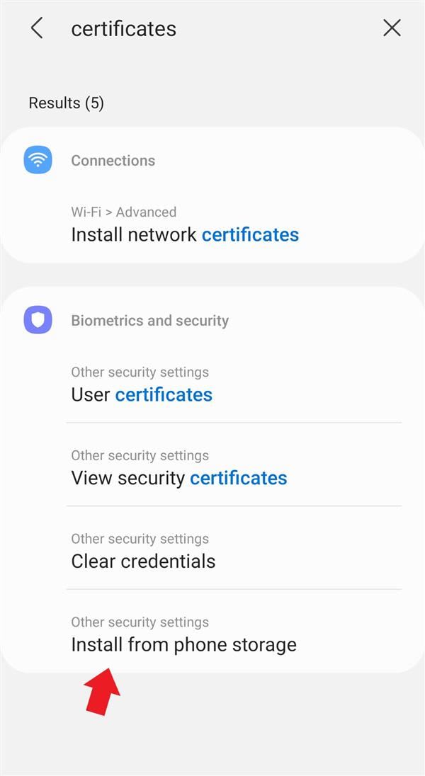Click the option to Install from phone storage which will take you to the page that will allow you to do so.