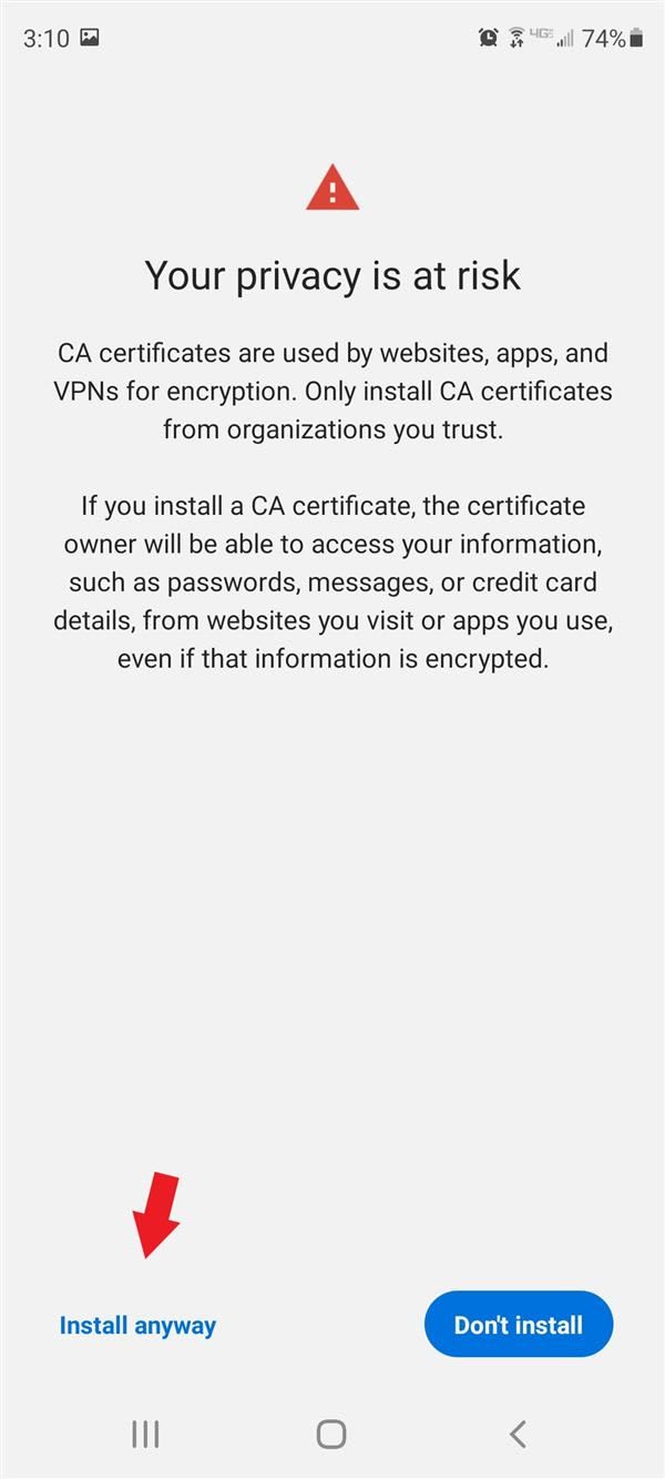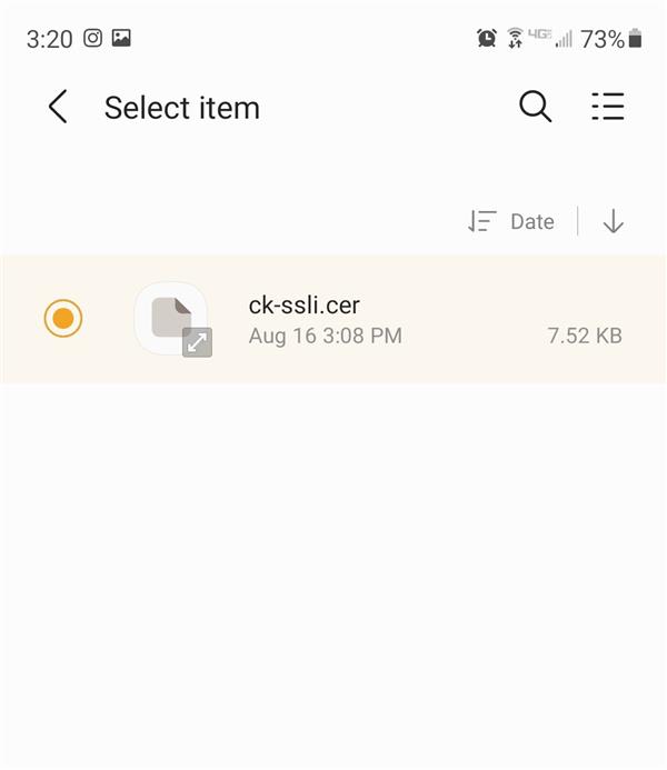 In Chrome, click this link: ContentKeeper to download the certificate. You will receive a warning that you "Can't install CA certificates." Just click OK and go on to next step.
